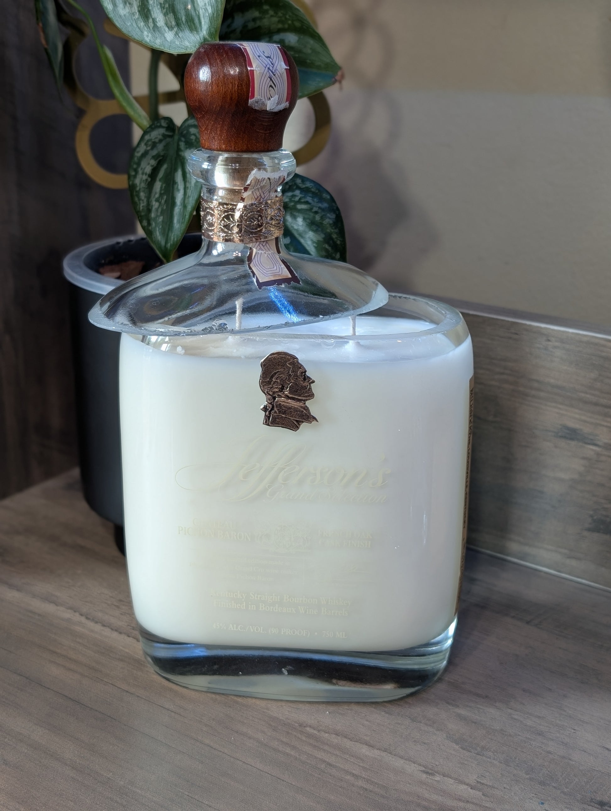 22 oz soy wax candle made in a special edition bourbon bottle.